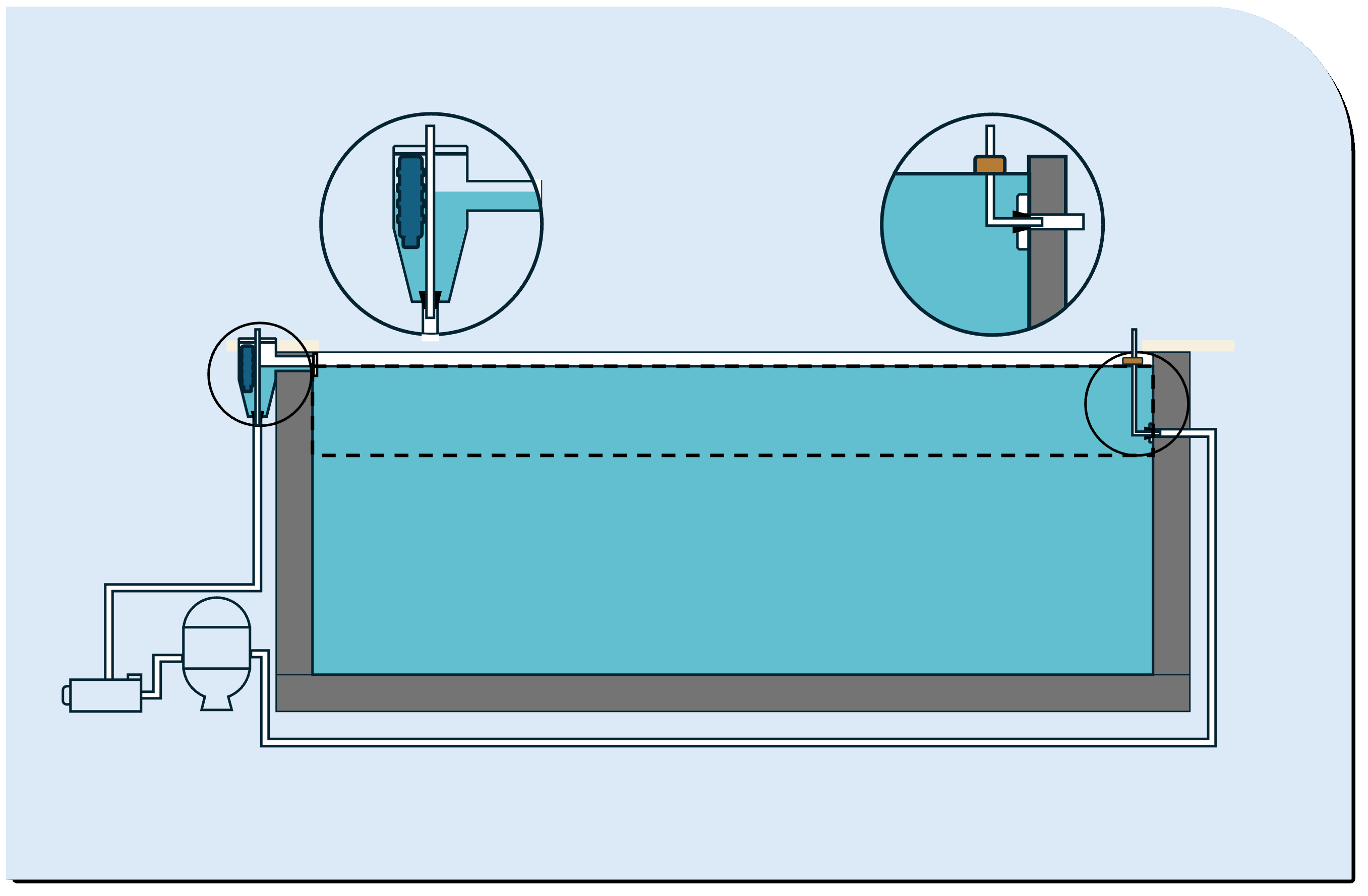 Le circuit de filtration est purgé et la piscine reste remplie.